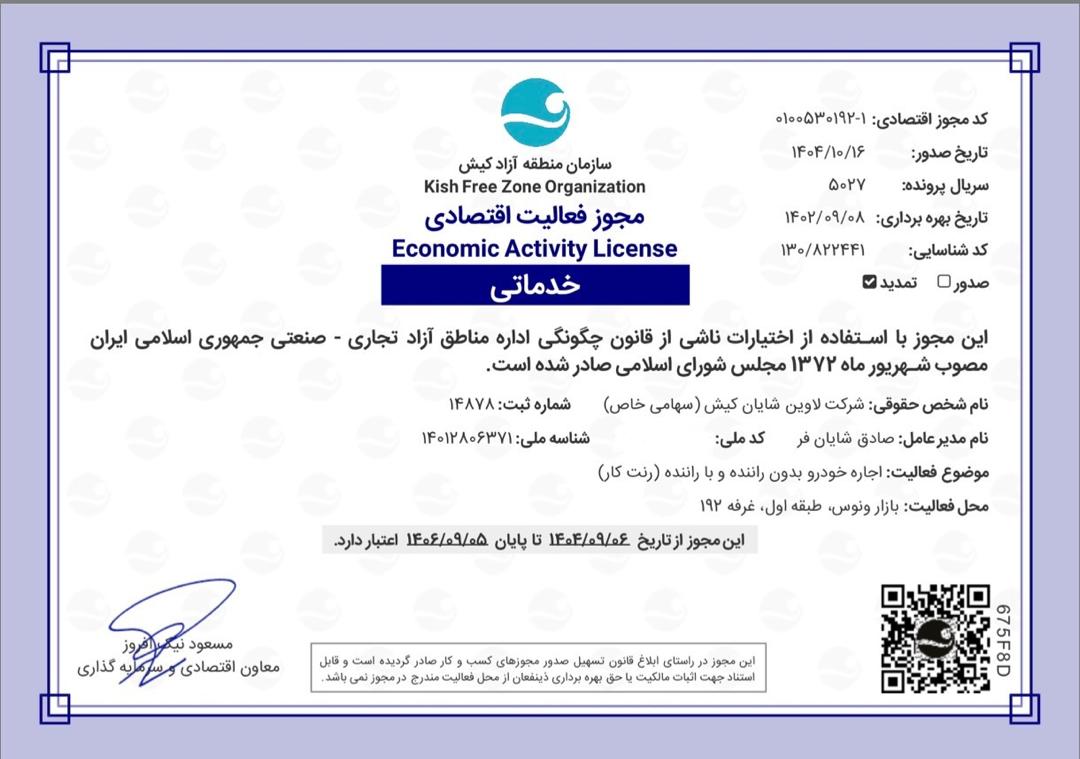 سازمان منطقه آزاد کیششماره مجوز:0100530192/1